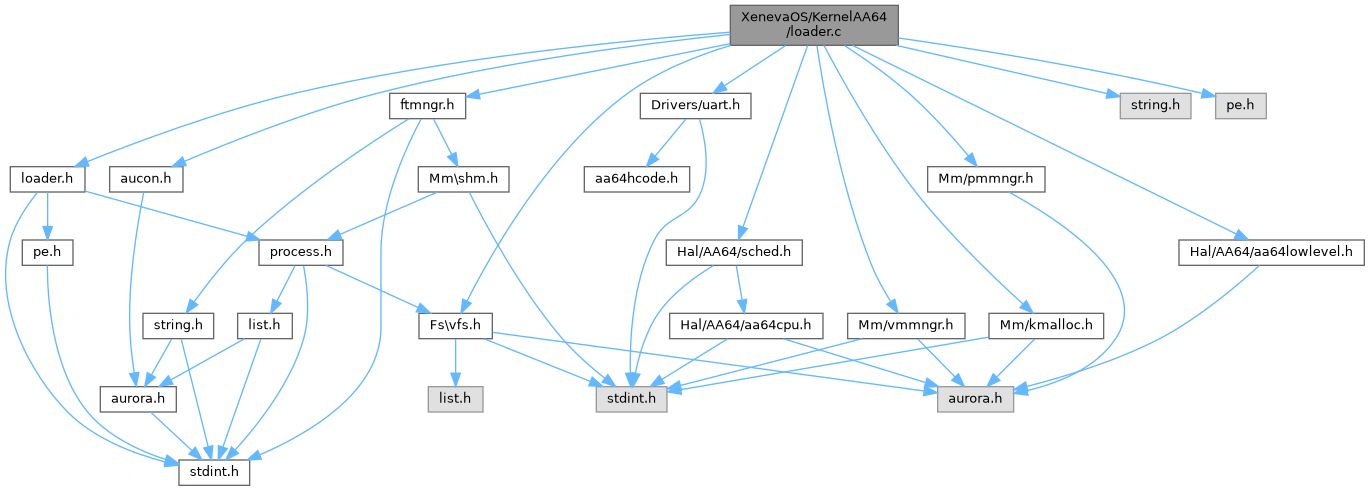 #include <loader.h>#include <Drivers/uart.h>#include <string.h>#include <Mm/pmmngr.h>#include <Mm/vmmngr.h>#include <Mm/kmalloc.h>#include <aucon.h>#include <Fs/vfs.h>#include <pe.h>#include <Hal/AA64/sched.h>#include <Hal/AA64/aa64lowlevel.h>#include <ftmngr.h>